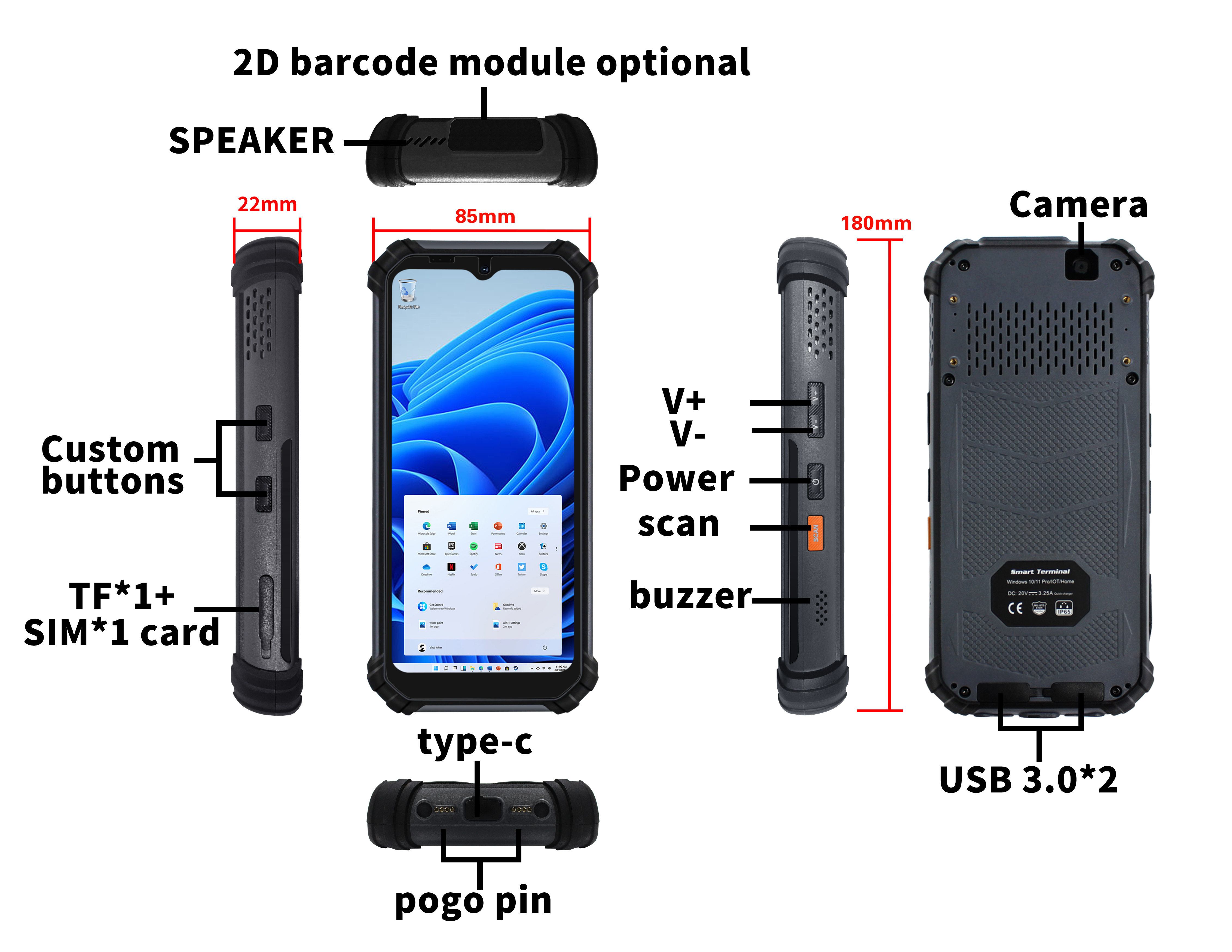 Robustes Windows 11-Handheld-Terminal für den industriellen Einsatz.Intel N100-Prozessor, 6,5-Zoll-Bildschirm, 5000mAh langer Akku.Integriert 2D-Scannen, NFC, Beidou / GPS.IP65-Schutz, 1,2m sturzsicher, -20 ° C ~ 55 ° C Betrieb.Volle Konnektivität, industrielle Software-Kompatibilität, flexible Erweiterung.Ideal für Logistik, Lagerhaltung und Feldoperationen.