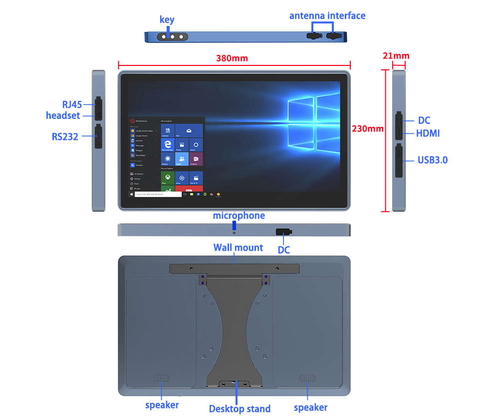 | Ein-/Ausgabeschnittstellen | HDMI*1; RJ45*1; RS232*1; Kopfhörer*1; Gleichstrom*2 (4,0×15mm); USB 3.0 *2 |