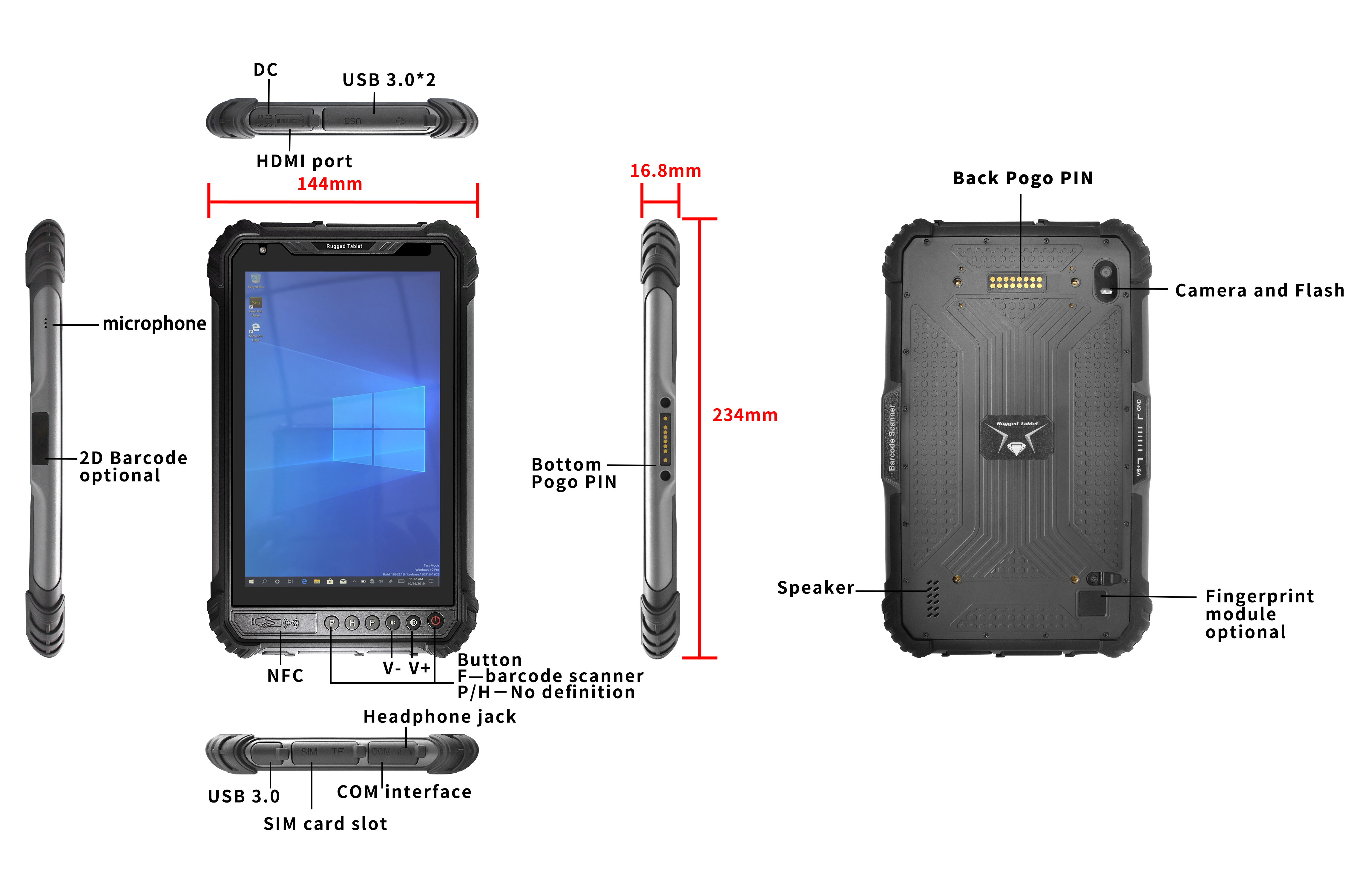 Robustes Windows-Tablet in Industriequalität: Die professionelle Wahl! Win10 / 11 optional, Intel Quad-Core-Prozessor + 8 GB RAM + 256 GB Speicher, reibungsloser Betrieb der professionellen Software. 400 nits (1000 nits optional), 5000mAh lange Akkulaufzeit, 4G / WiFi + präzise Positionierung. IP65-Schutz + 1,2 Meter Fallfestigkeit, langlebig in rauen Umgebungen. Anpassbare Module, geeignet für Logistik-, Medizin- und Industrieanwendungen, hohe Leistung und erhöhte Zuverlässigkeit!