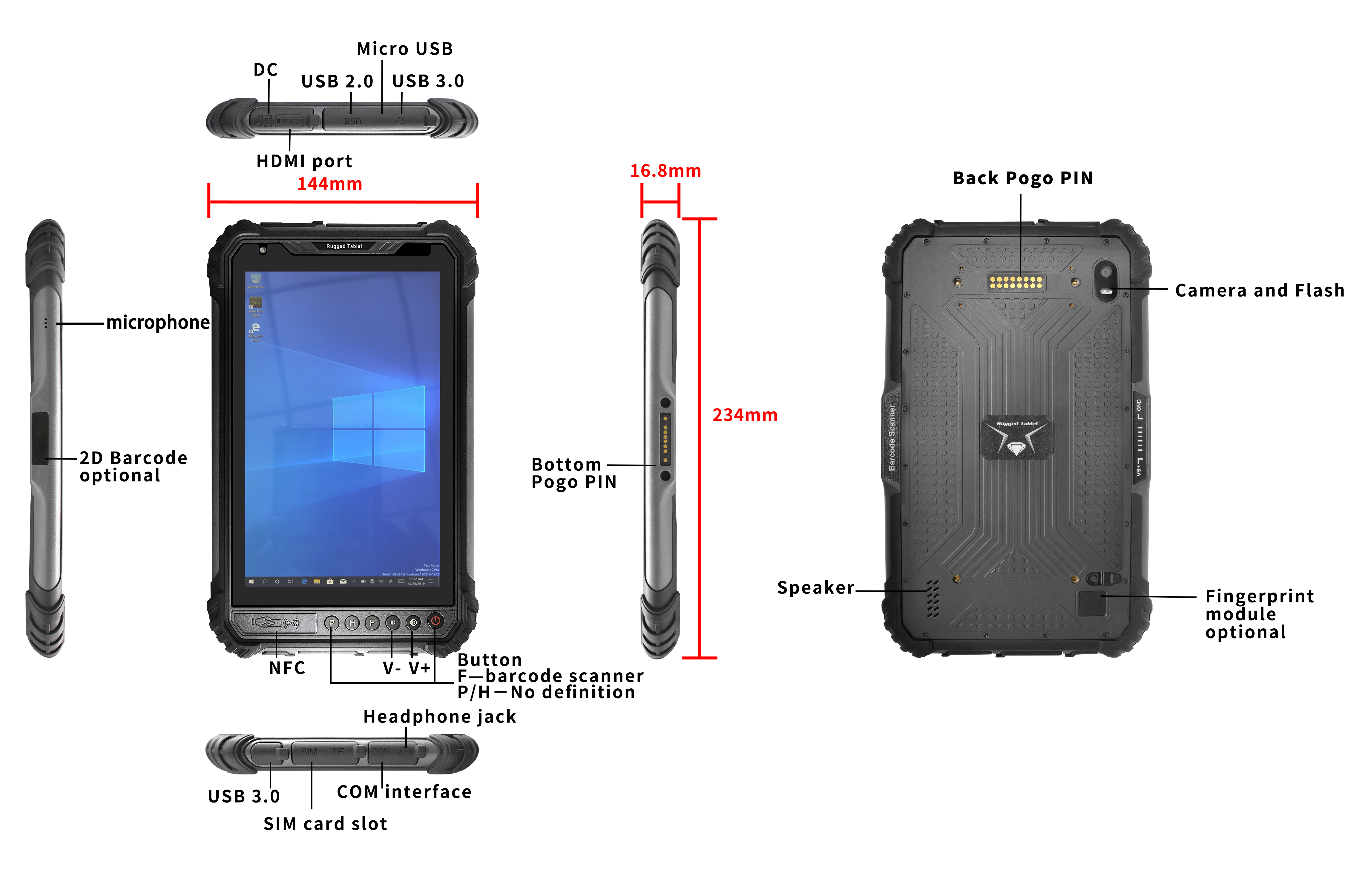 Robustes Tablet für Logistik, Industrie und andere Szenarien: Ausgestattet mit Windows 10 und einem Quad-Core-Prozessor, verfügt es über einen Bildschirm mit hoher Helligkeit, unterstützt Multimode-Kommunikation und verfügt über praktische Funktionen; bietet IP65-Schutz und breite Temperaturanpassungsfähigkeit mit erweiterbaren Funktionen, was es zu einem langlebigen Werkzeug für industrielle Umgebungen macht.